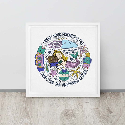 Keep Your Sea Anemones Closer – Mermaid Wall Art - Framed Canvas Print