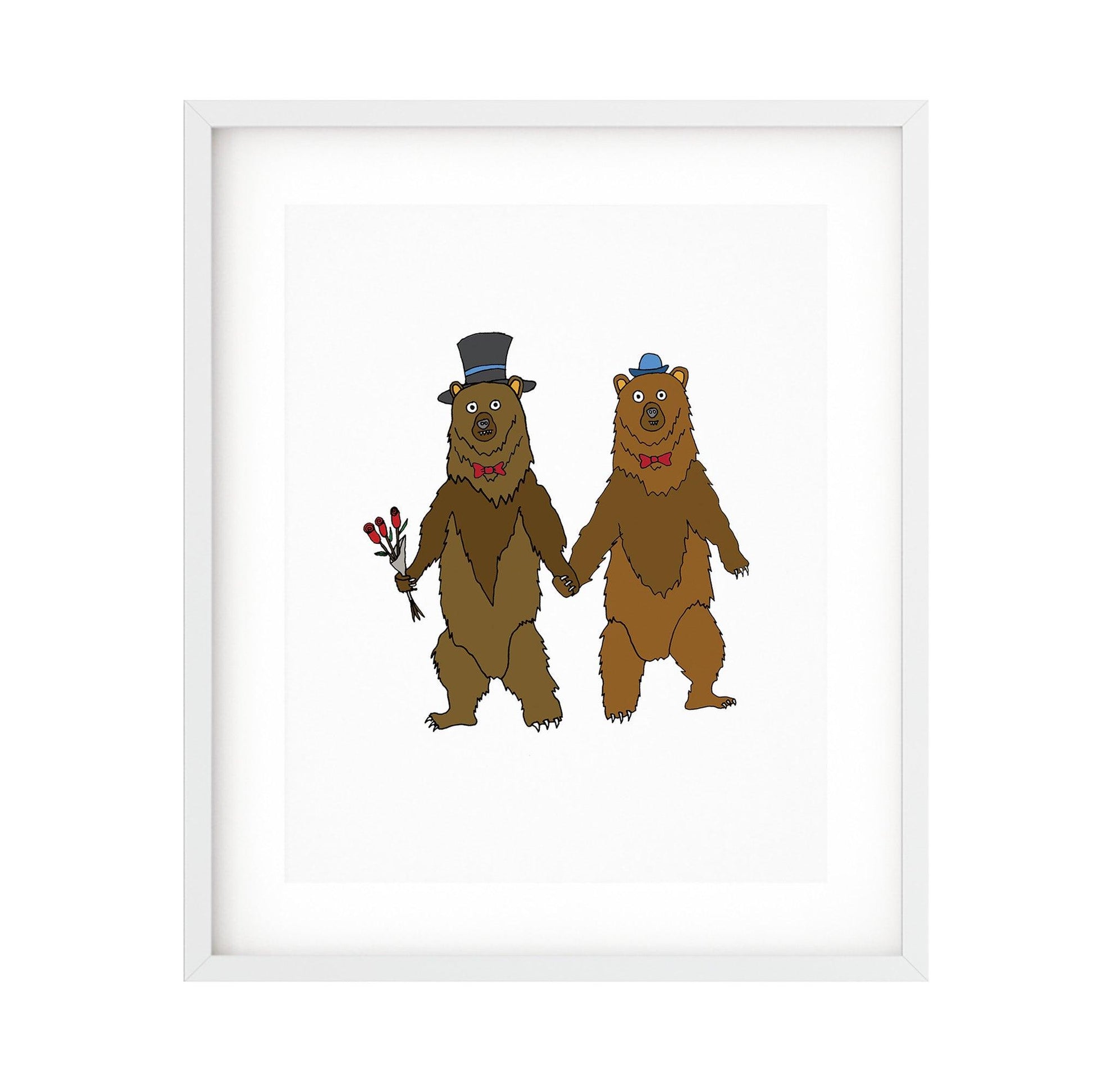 A playful illustrated design featuring two bears holding paws. High quality print based on an original ink drawing. Colors may vary due to monitor settings.