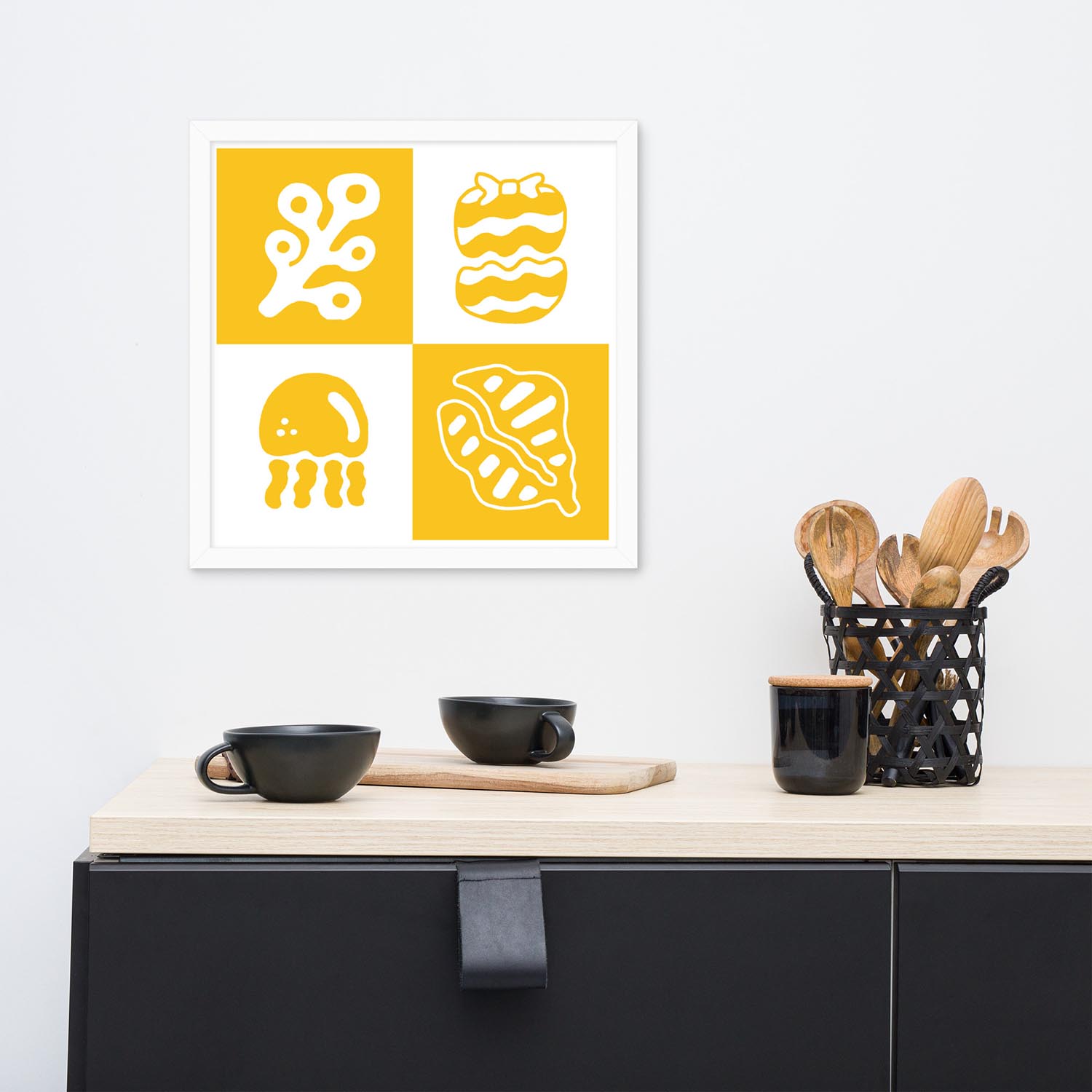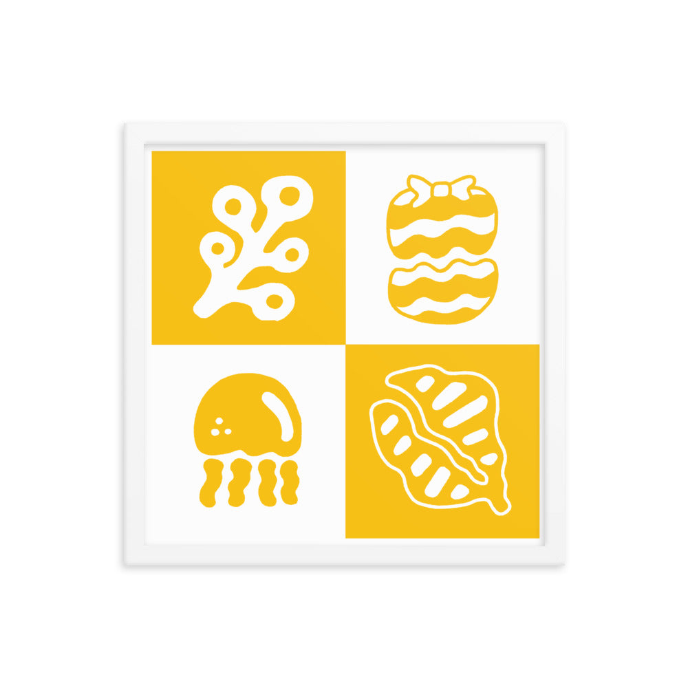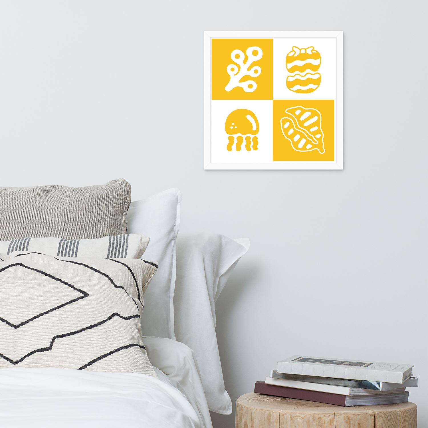 - Framed under clear plexiglass with a white PVC frame. Sawtooth hanger included.