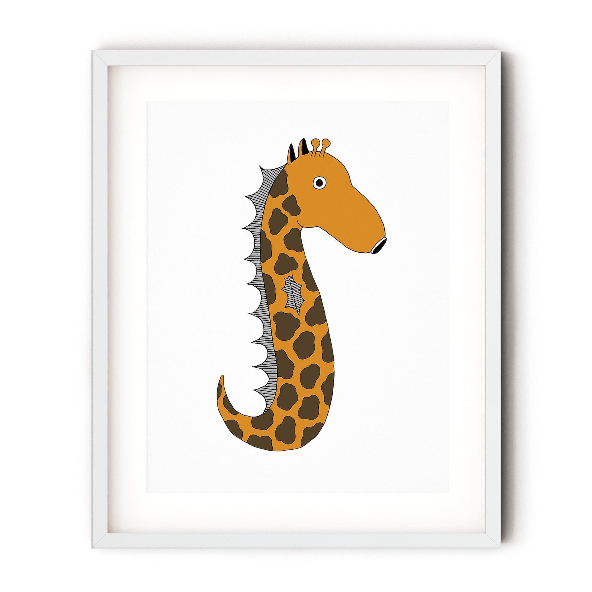 A playful illustrated design featuring Vinny the "sea giraffe" drawing by A Duck Amuck. The print is based on an original ink drawing (digitally colored). Colors may vary due to monitor settings.